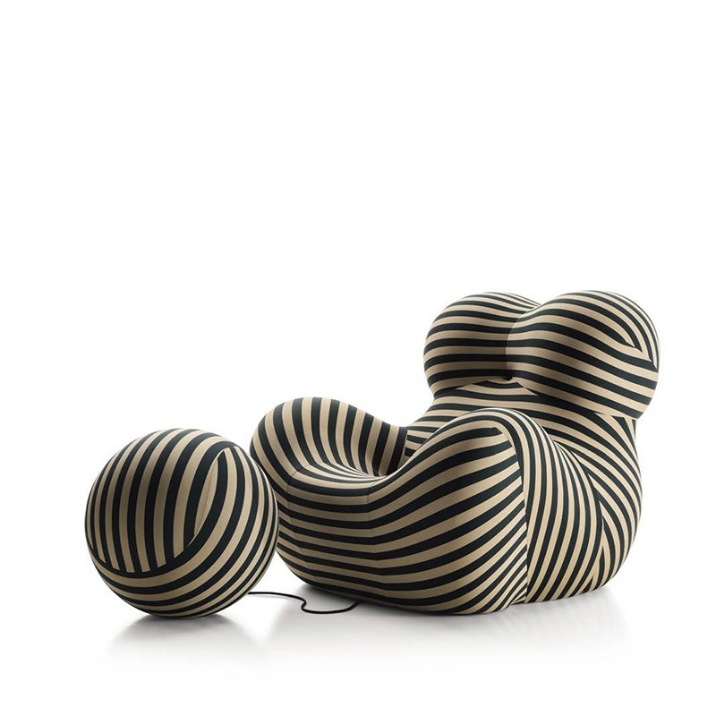 Zum 50-jährigen Jubiläum von Up5_6 bringt B&B Italia den von Gaetano Pesce entworfenen Klassiker in einer beige/petrolfarben-gestreifte Sonderedition heraus, die sich an den Originalfarben des Jahres 1969 inspiriert.