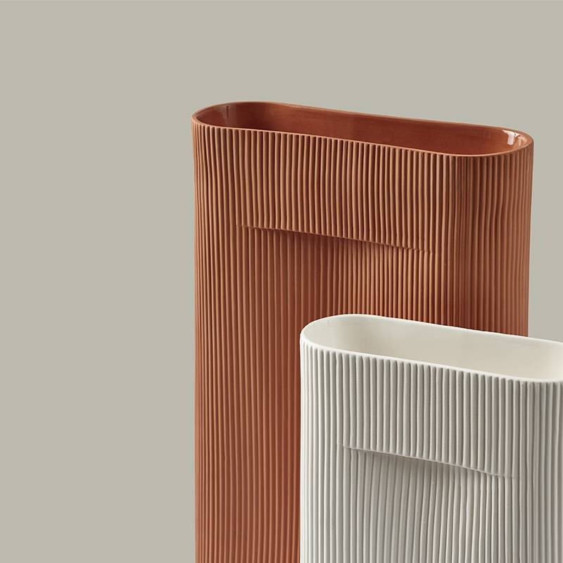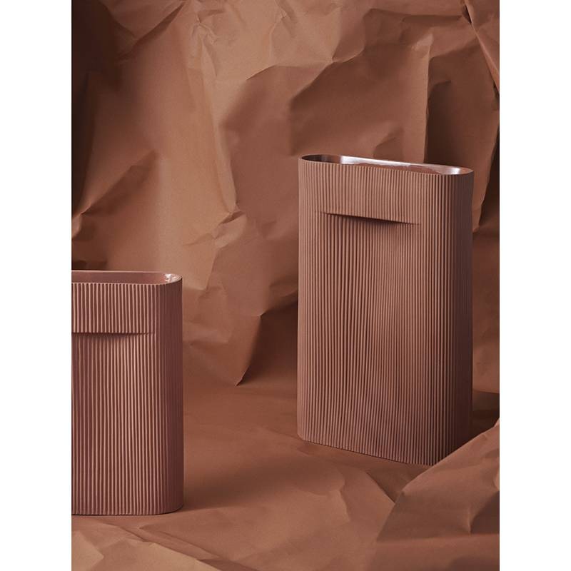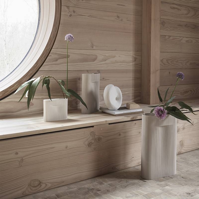 Die Außenseite der Muuto Ridge Vase ist unbehandelt und hat eine raue Oberfläche.