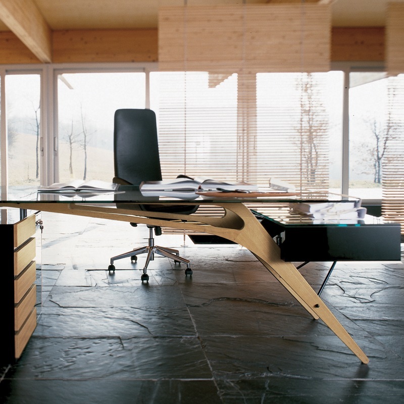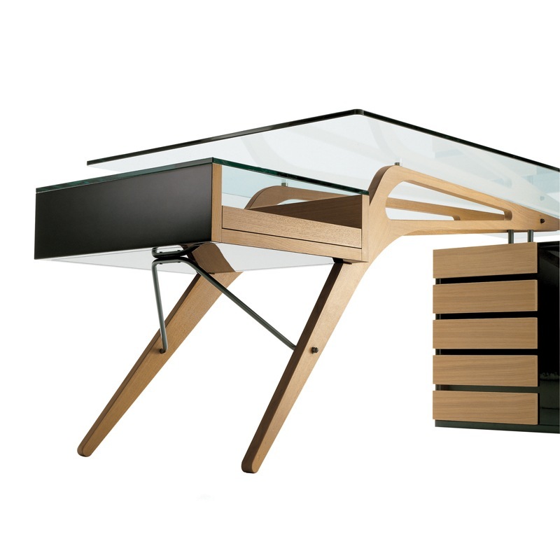 Schubladen & Ablage bezogen mit gehärtetem extraklarem Glas, nach hinten schwarz lackiert (Stärke 8 mm)