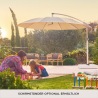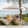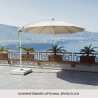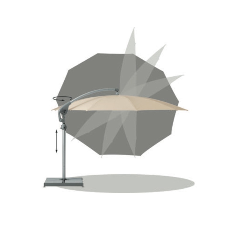 Schirmdach mittels Kugelgelenk stufenlos in alle Richtungen bis 90° neigbar und 360° um den Mast drehbar