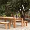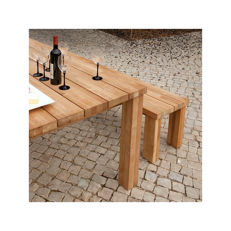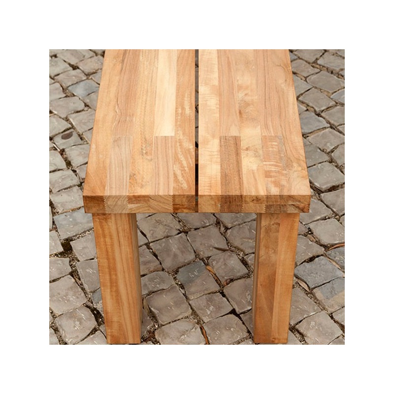 Das Teakholz zeichnet sich durch einige Knoten und eine kräftige Maserung mit möglicherweise kleineren Risse aus, die alle Teil des natürlichen und rustikalen Charakters dieser Produkte sind.