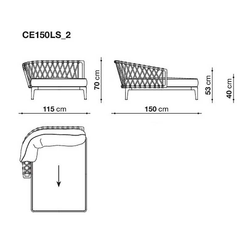 Schutzhülle für B&B Italia Outdoor ERICA MODULAR Armlehn-Chaiselongue II, 150 cm