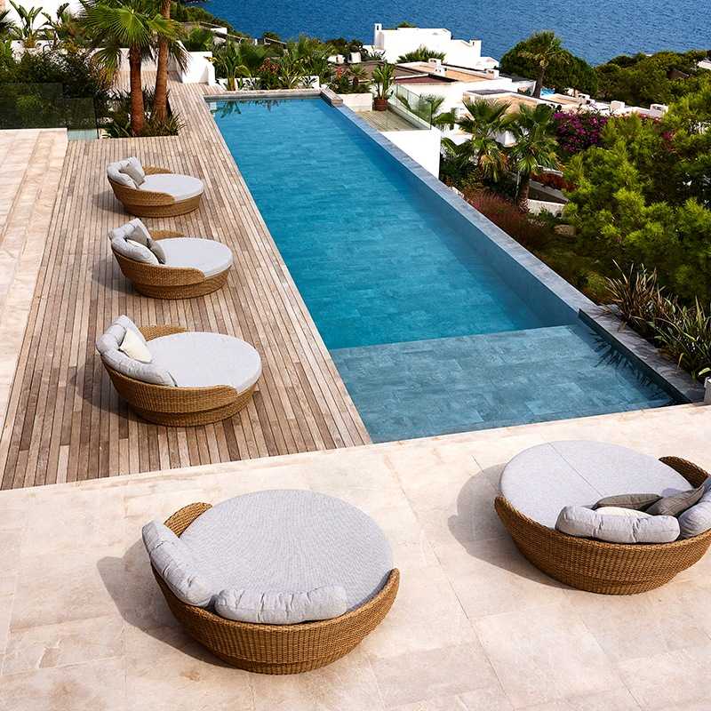 Dank der offenporigen Strukur kann (Regen-) Wasser einfach hindurchfließen und die Polster sind im Handumdrehen wieder trocken. Polster und Kissen mit Quick Dry Foam® können bedenkenlos das ganze Jahr über im Freien bleiben.