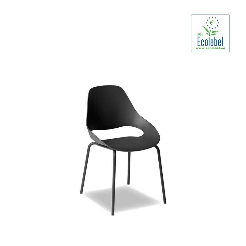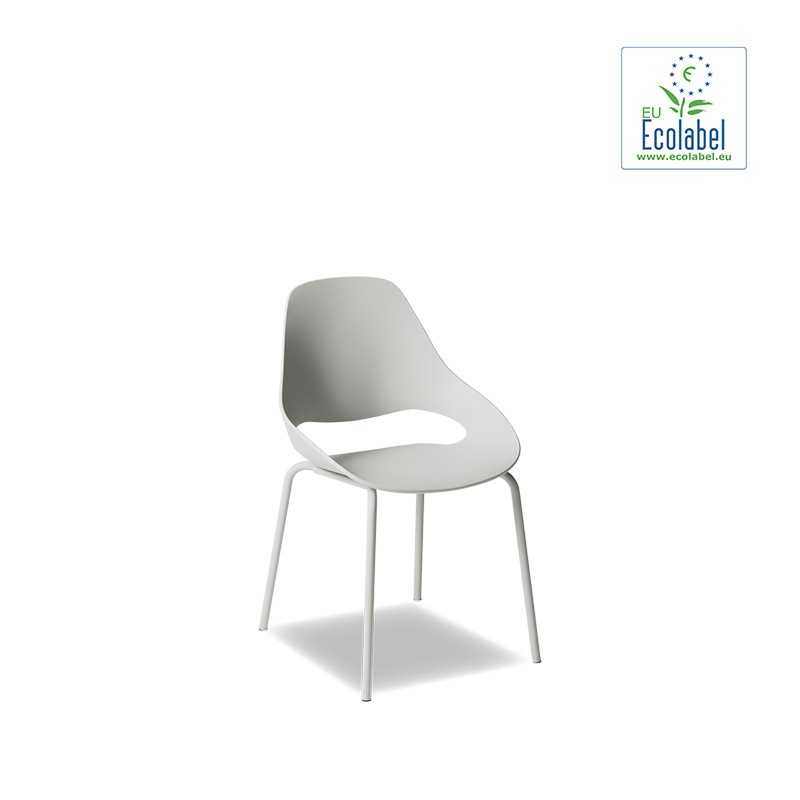 Die Sitzschalen der FALK Stuhl-Kollektion bestehen aus 75% recyceltem Kunststoff, 20% Glasfaser und 5% Farbpigmenten