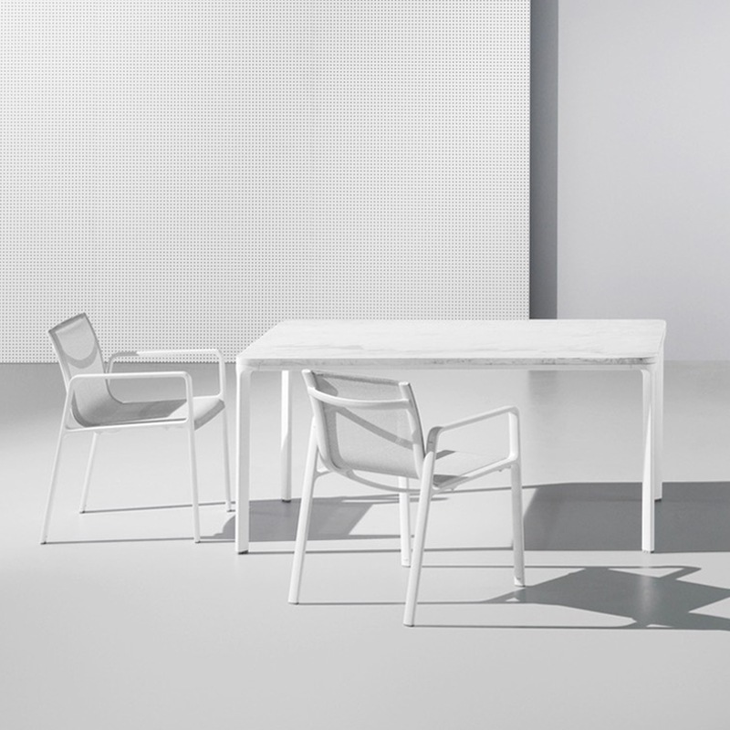 Kettal Marmor ist eine Kombination aus Marmor, Aluminiumwaben und Fiberglas. Die Tischplatten sind leicht, stark und absolut wetterfest.