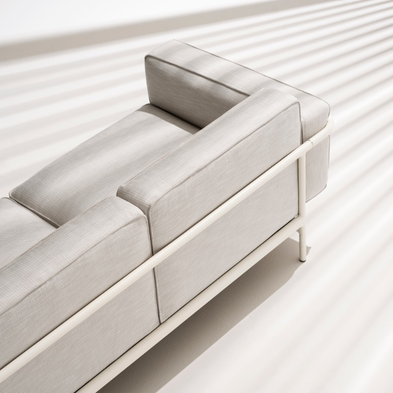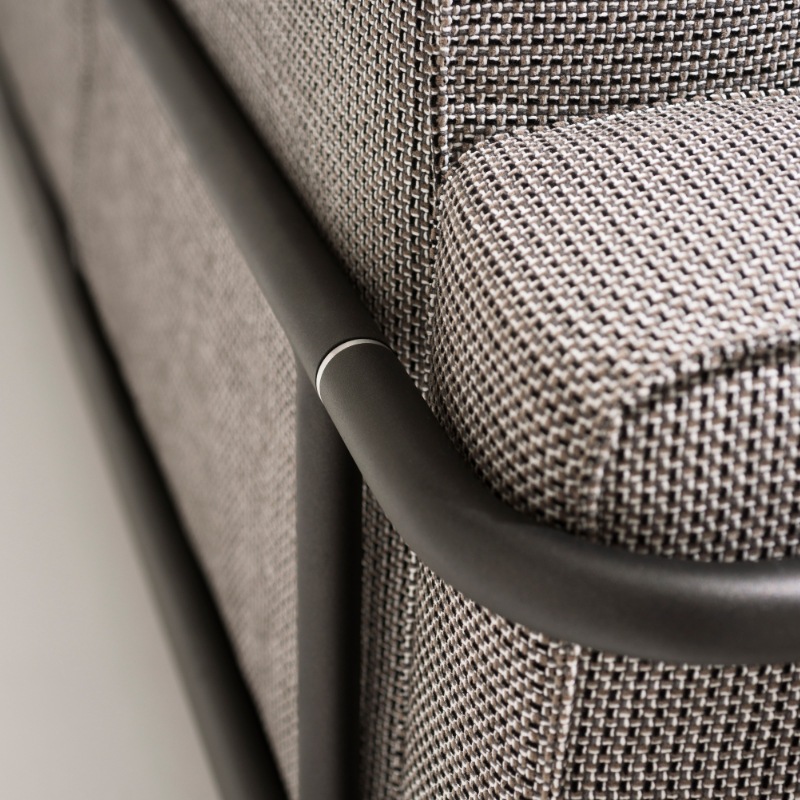 Polster mit Bezügen in verschiedenen Farb-Varianten, wetterbeständiger Hydrodränage-Ausführung.