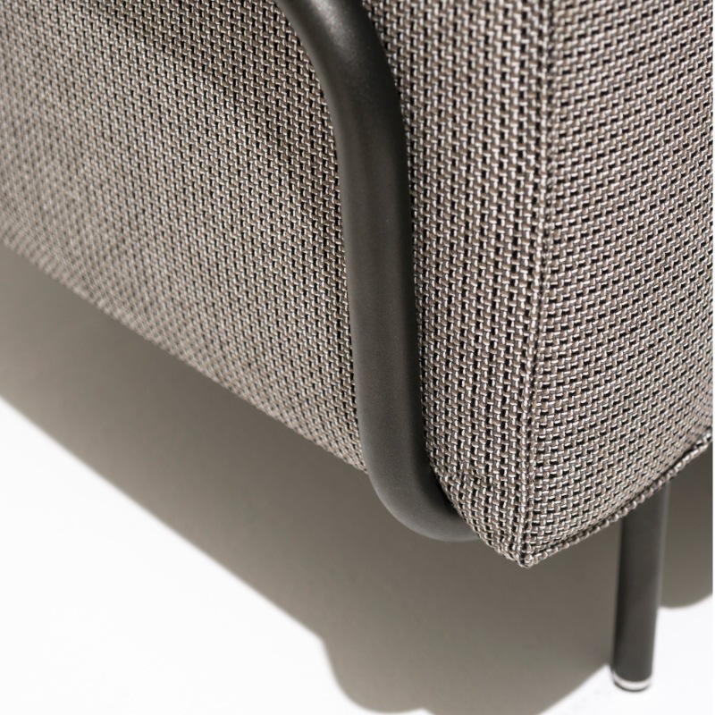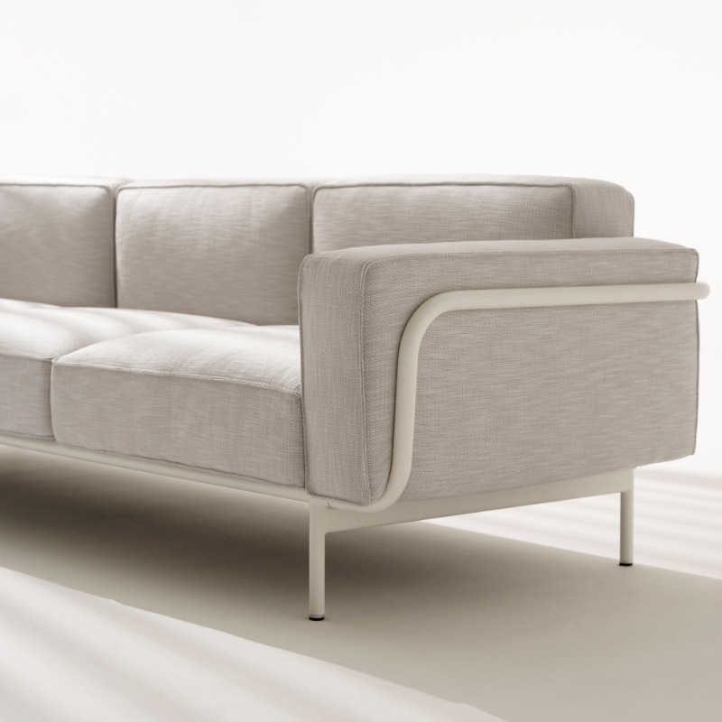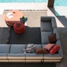 4-Sitzer Sofa-Kombination aus der ESTENDO Lounge-Möbelserie, bestehend aus einem Aluminium-Rahmen mit Lamellen-Basis und Polstern, die optional auch in wetterbeständiger Ausführung erhältlich sind.