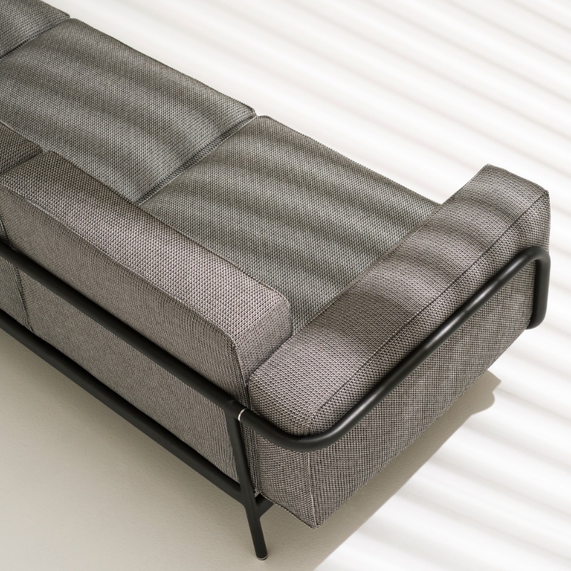 Rahmen in zwei Farb-Varianten, gefertigt aus pulverbeschichtetem Aluminium mit Verbindungen aus Aluminium-Druckguss und einer Basis aus glasfaserverstärkten Polypropylen-Lamellen.
