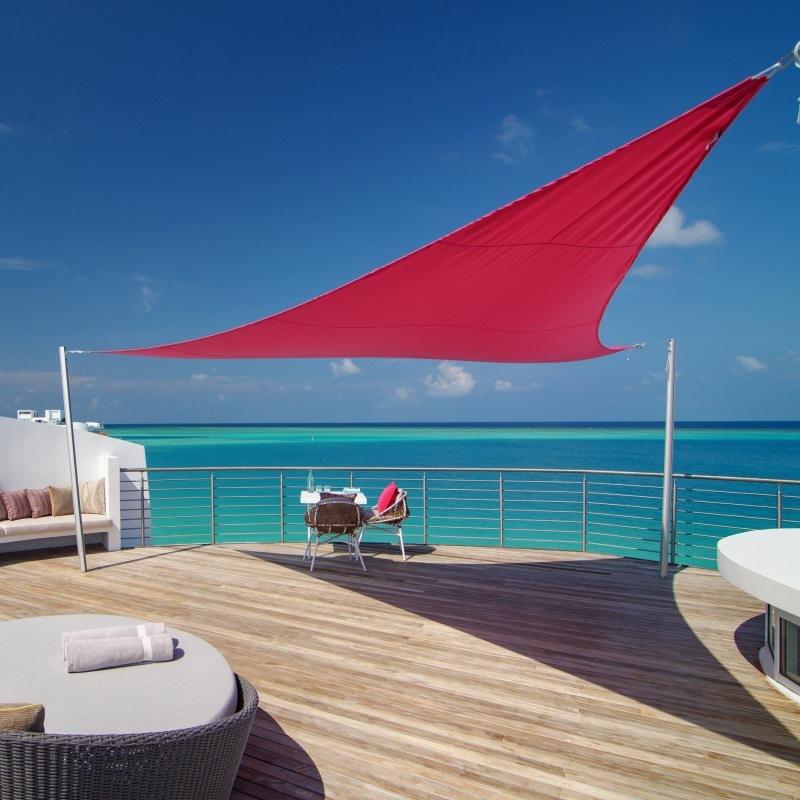 Durch unterschiedliche Montagemöglichkeiten kann das Sonnensegel individuell fixiert werden