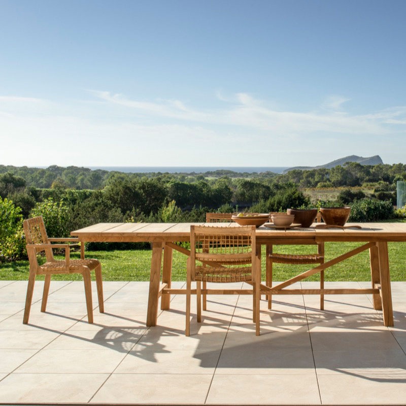 Das robuste und elegante Teakholz mit seinen warmen Farbnuancen ist ideal für die Verwendung im Outdoorbereich geeignet. Es ist von Natur aus reich an Mineralsalzen und Ölen und dadurch besonders widerstandsfähig gegen Schädlinge und Witterungseinflüsse wie Sonne, Regen und Salz.