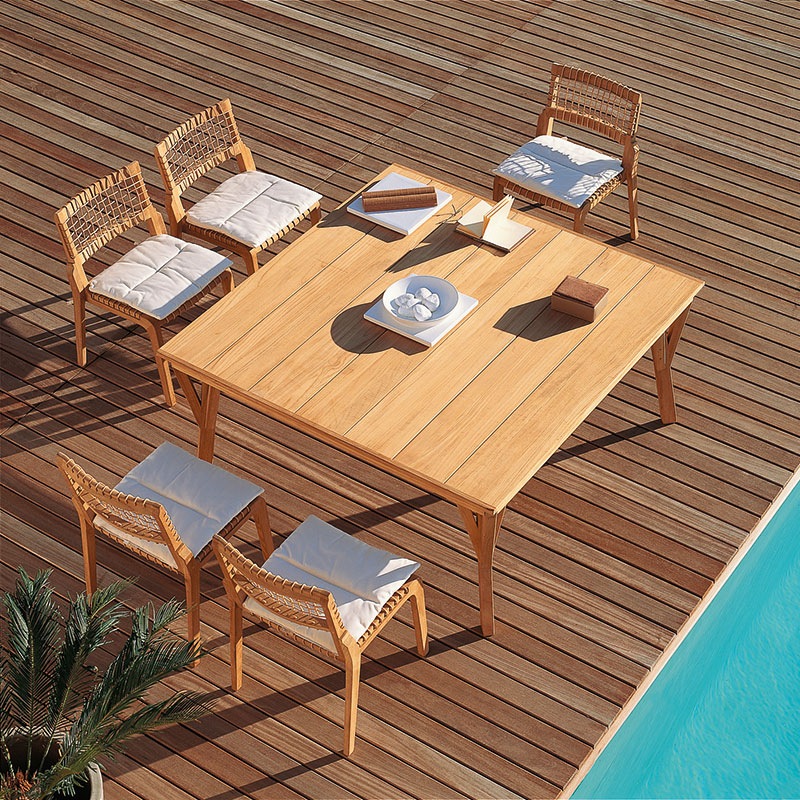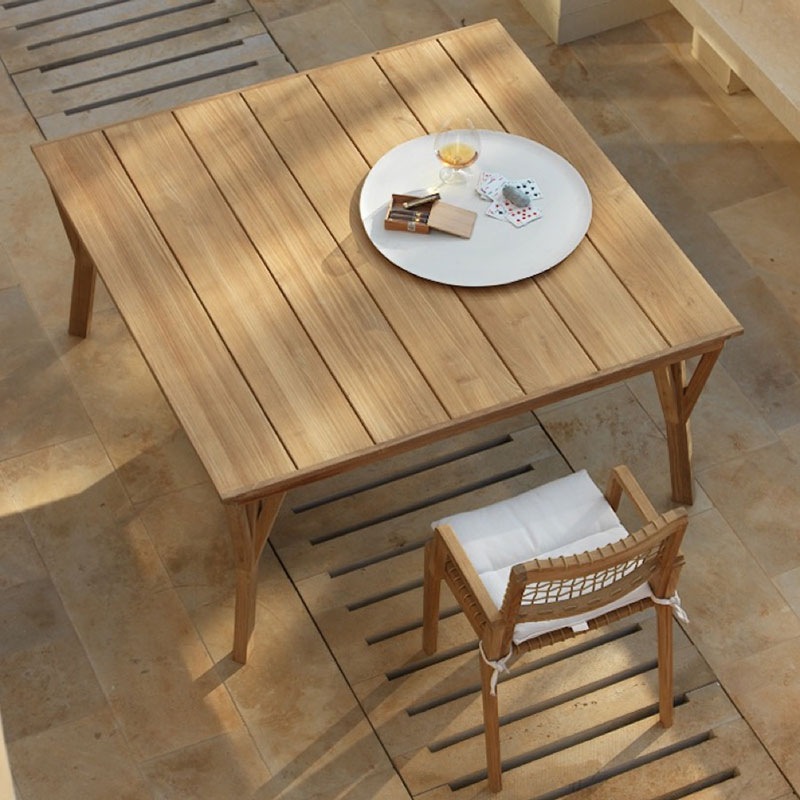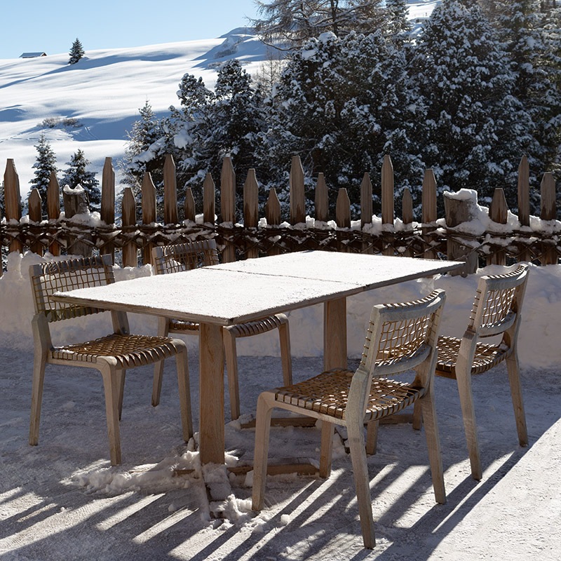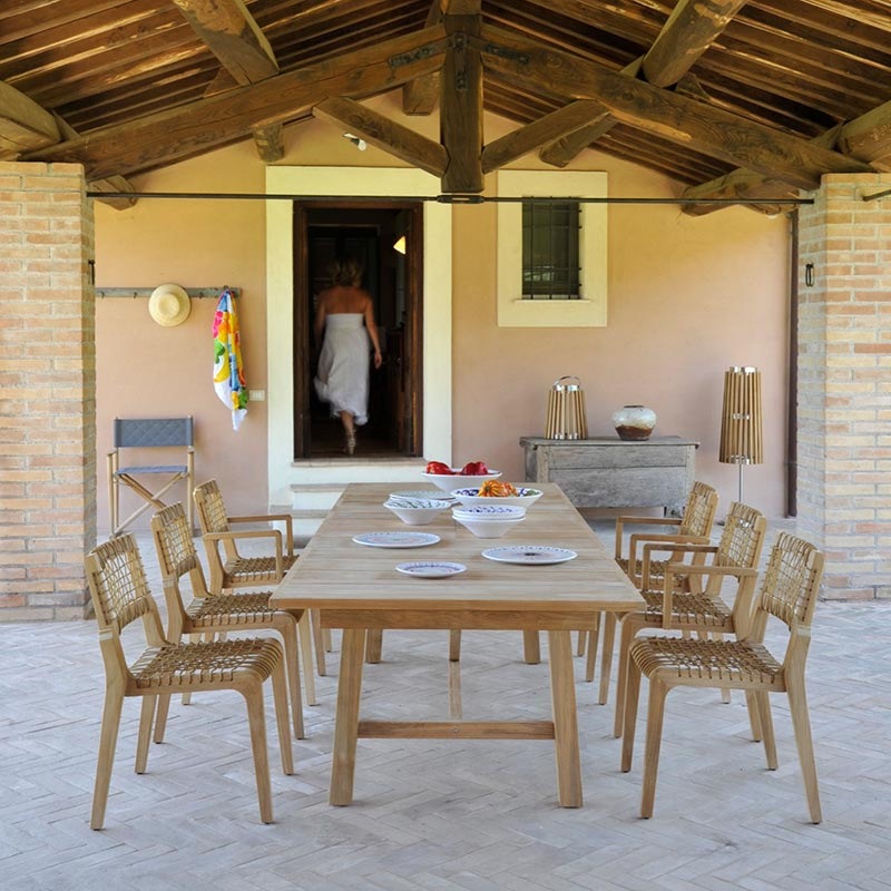 Das robuste und elegante Teakholz mit seinen warmen Farbnuancen ist ideal für die Verwendung im Outdoorbereich geeignet. Es ist von Natur aus reich an Mineralsalzen und Ölen und dadurch besonders widerstandsfähig gegen Schädlinge und Witterungseinflüsse wie Sonne, Regen und Salz.