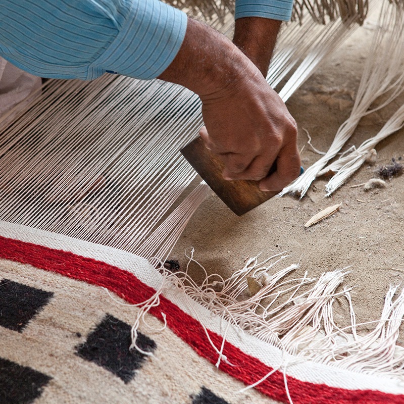 Aufgrund der Unregelmäßigkeit des handgesponnenen afghanischen Wollgarns kann das Garn während des Färbevorgangs unterschiedliche Farbtöne annehmen