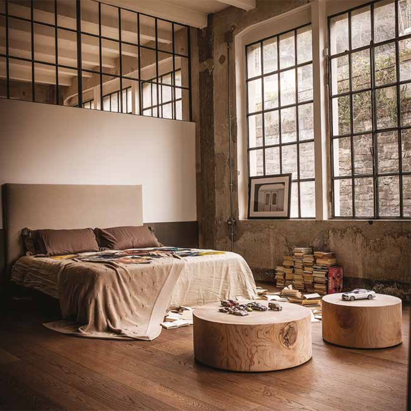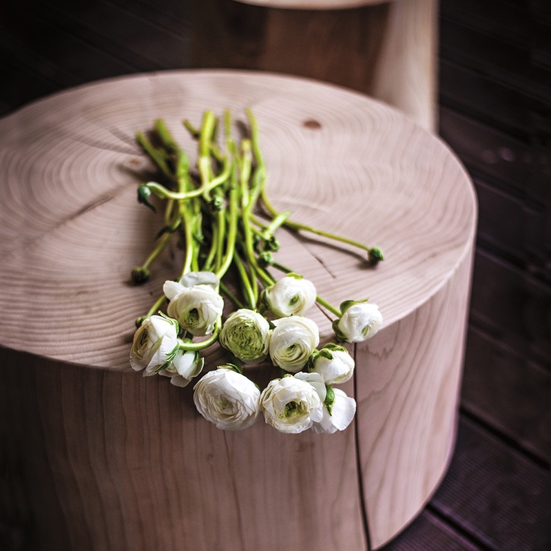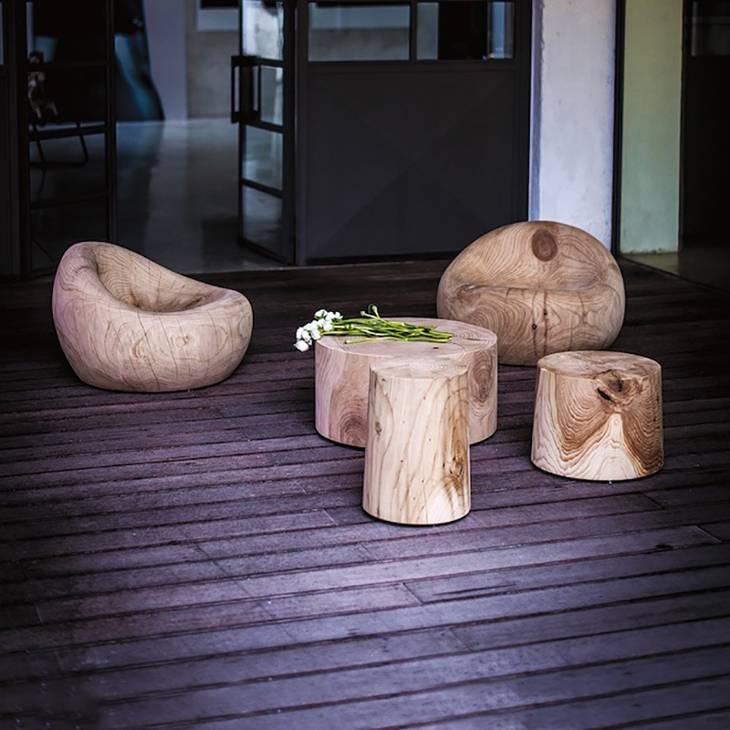 Kleiner Riva Couchtisch aus herrlich duftendem, massivem Zedernholz. Die Tische werden nur aus einem einzigen Holzblock hergestellt, wodurch die für Bäume typischen, konzentrischen Jahresringe deutlich hervorgehoben werden.