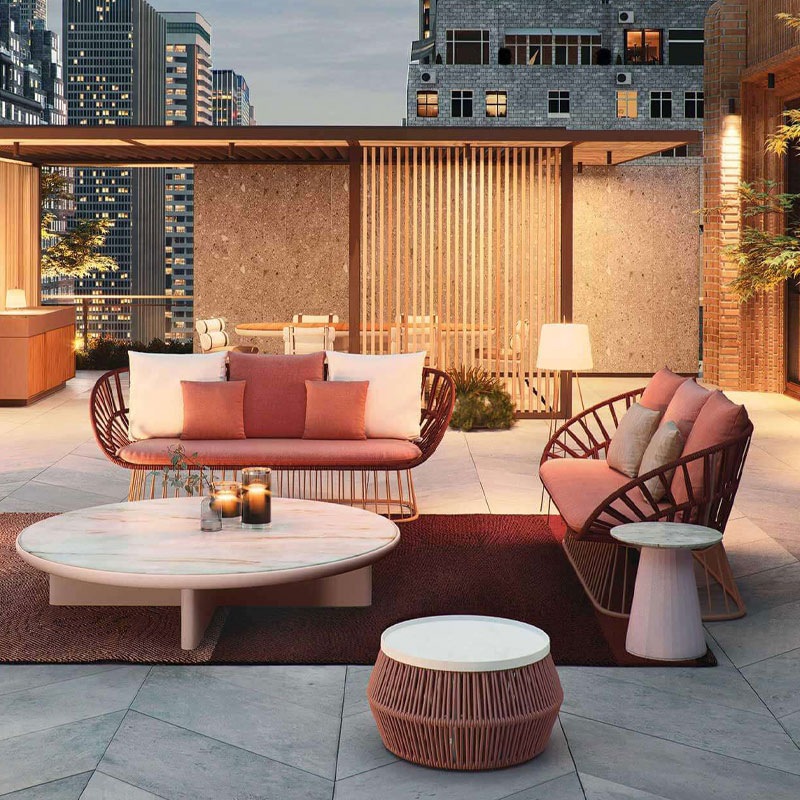 Kettal Marmor ist eine Kombination aus Marmor, Aluminiumwaben und Fiberglas. Die Tischplatten leicht, stark und absolut wetterfest.