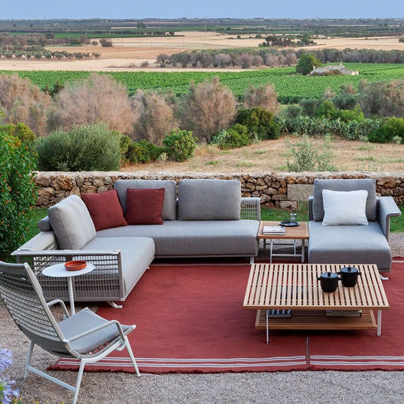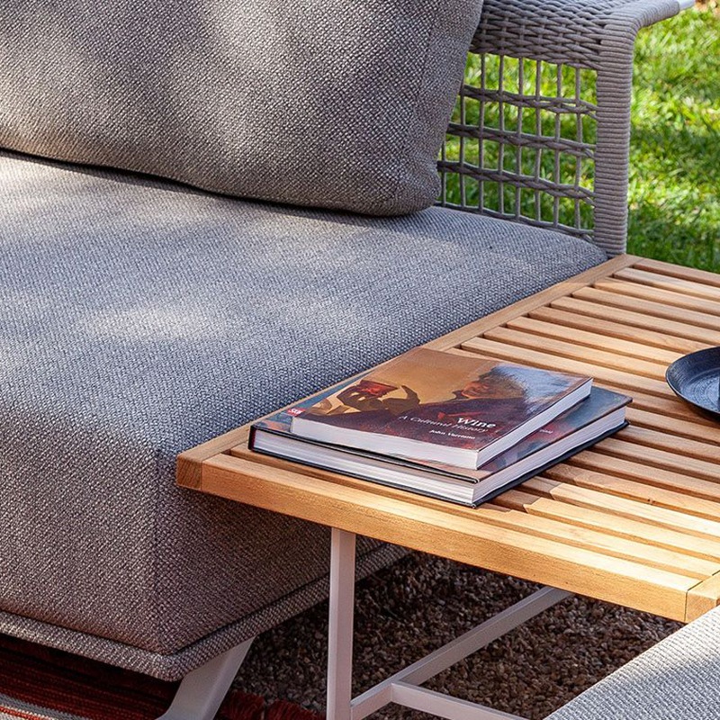 Inkl. Beistelltisch aus Teakholz, 87 x 57 cm