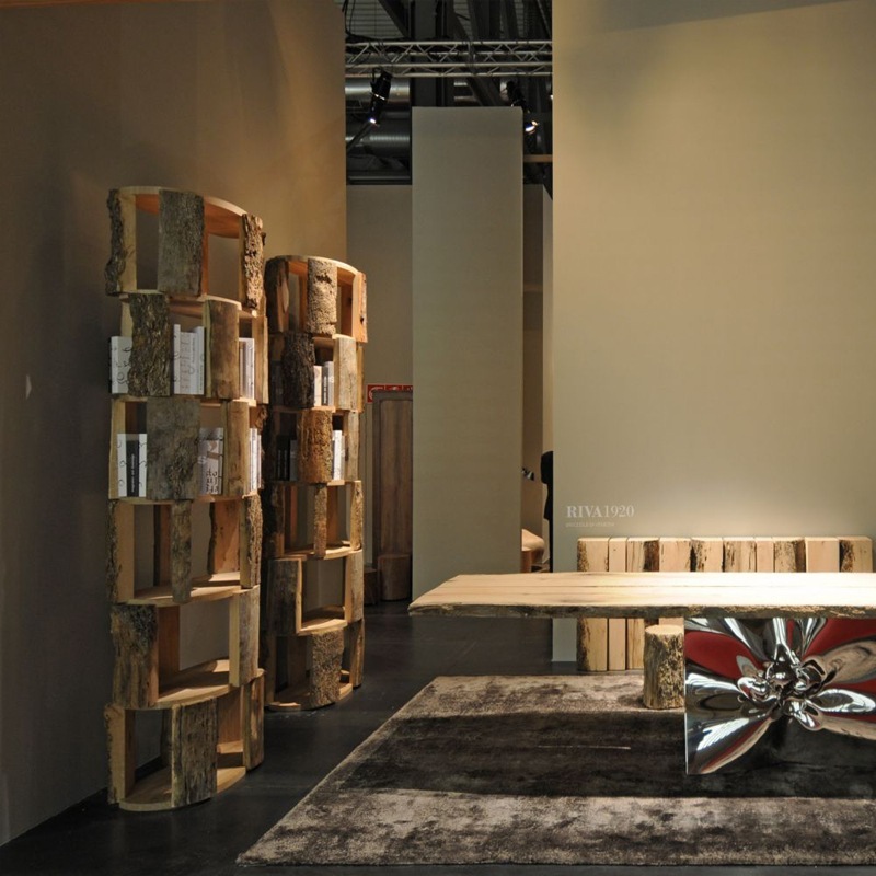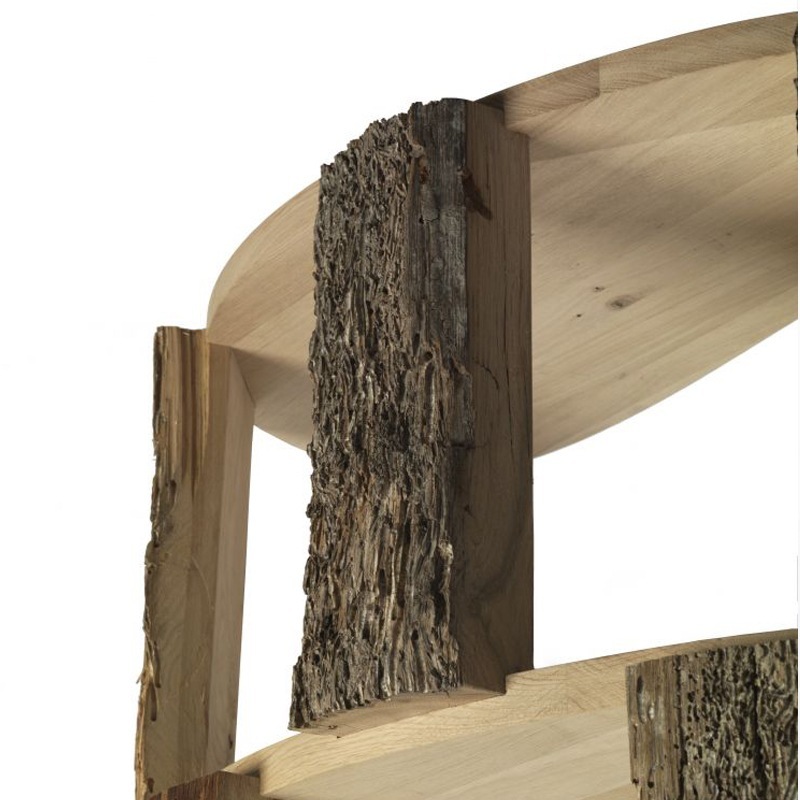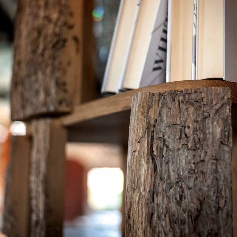 Bücherregal aus naturbelassenem Briccola-Massivholz mit Regalböden aus massiver Eiche.