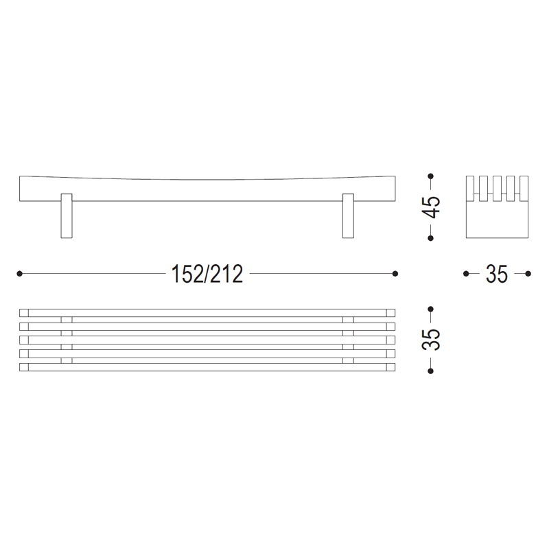 Abmessungen: Breite 152 | 172 | 182 | 192 | 212 cm, Tiefe 35 cm, Höhe 45 cm