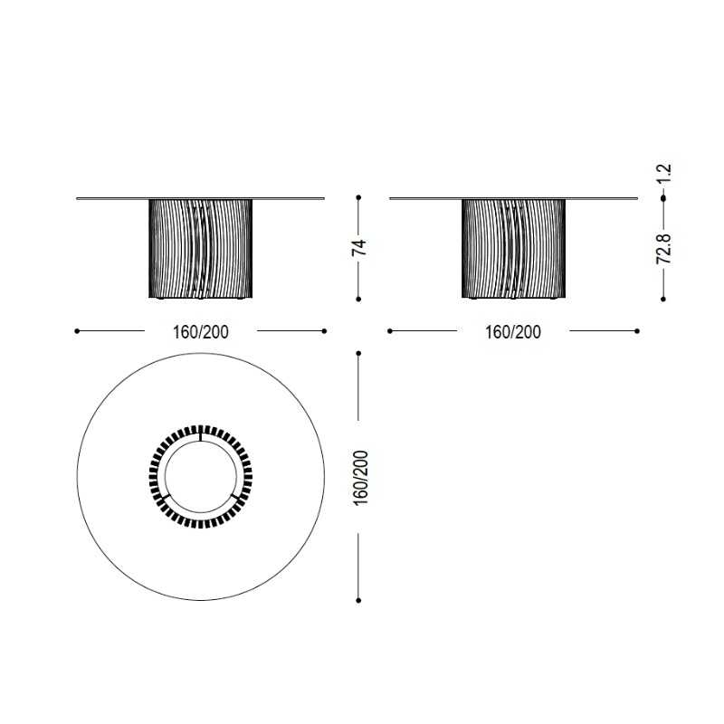 Abmessungen: 160 | 180 | 200 cm Durchmesser, 74 cm Gesamthöhe