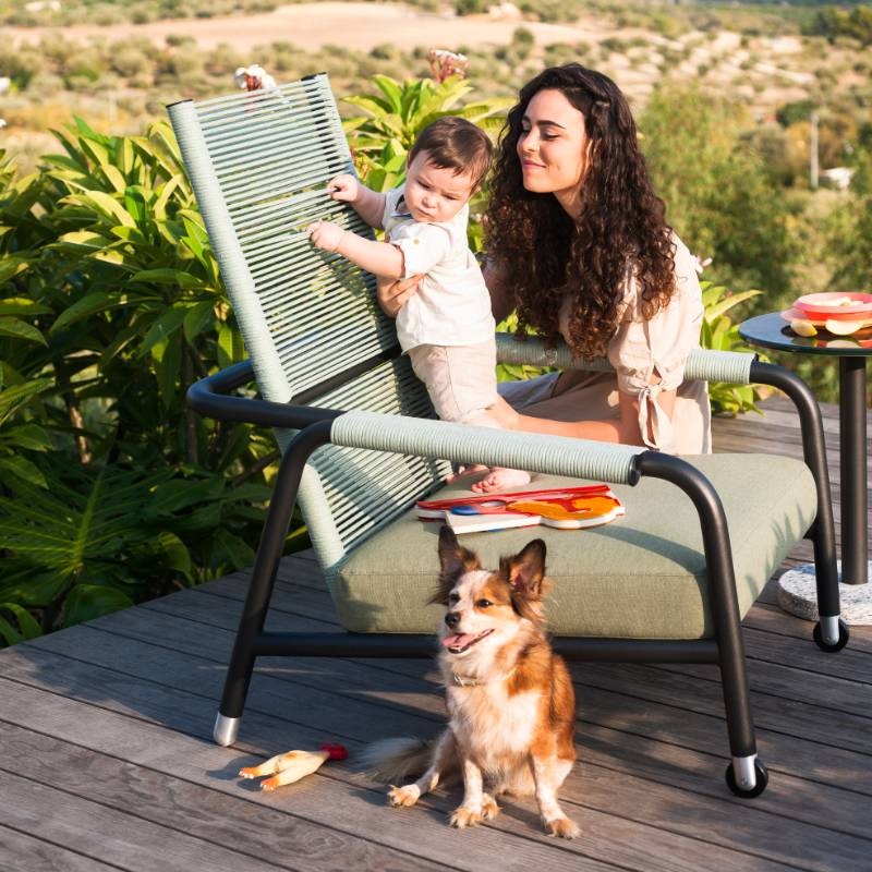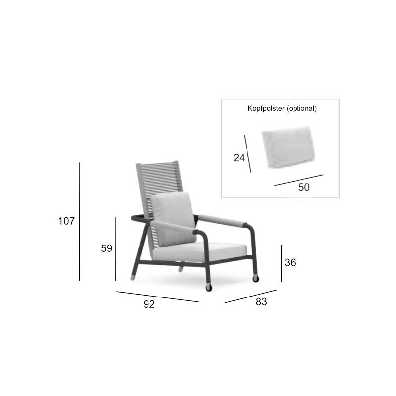 Lounge-Sessel mit hoher, verstellbarer Rückenlehne, Rollen und optionalem Kopfpolster