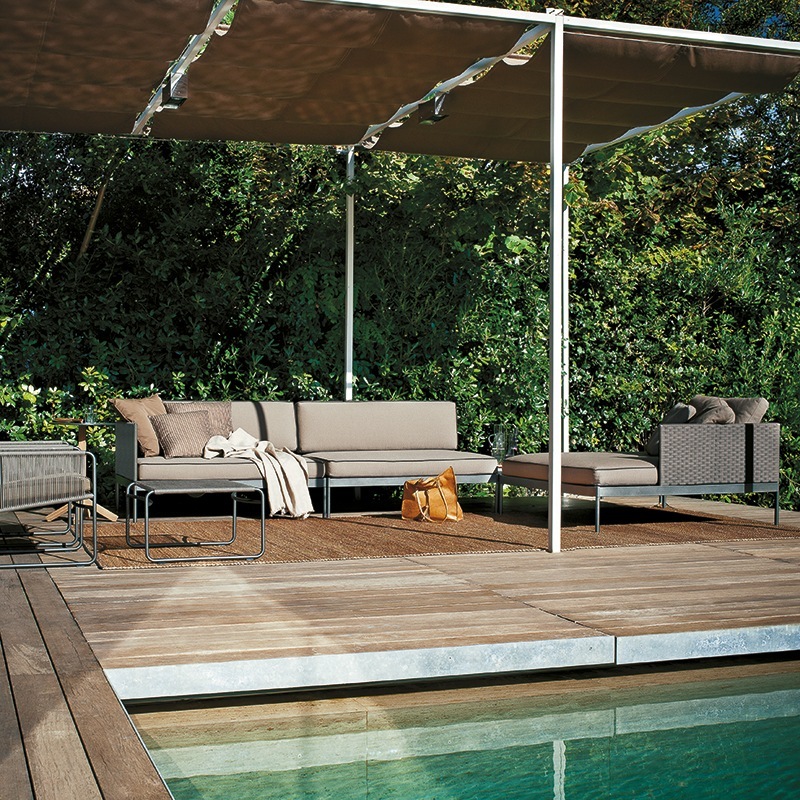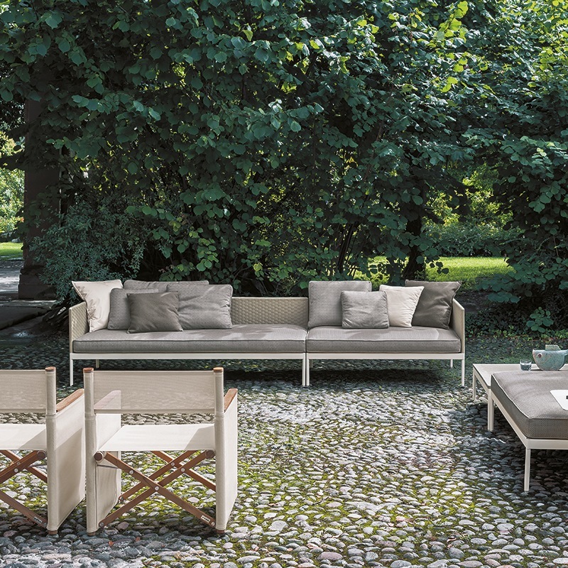 Rücken- und Lehnenkissen aus witterungsbeständigen Flocken (ökologische, hanfähnliche Naturfaser) mit Kammersystem