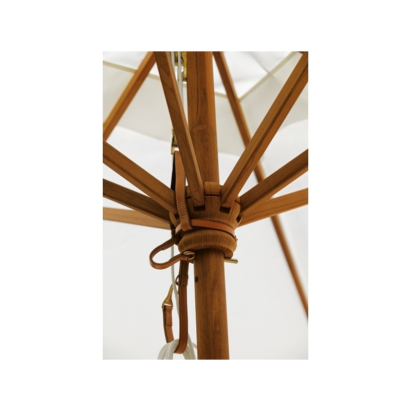 Schirmstamm und Naben Teak massiv, mehrlagig wasserfest verleimt, oberflächenimprägniert