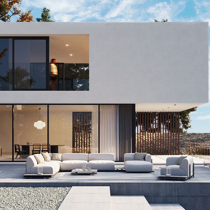 Die Unopiù Stoffkollektion bietet eine breite Palette an UV- und wetterbeständigen Stoffen. Das Material besteht aus 100% durchgefärbten Acrylfasern, die schmutz- und schimmelbeständig sind und sich durch eine besondere Weichheit, Frische und angenehme Haptik auszeichnen.