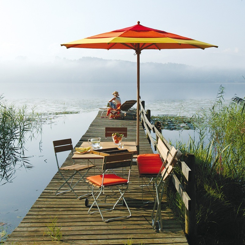 Schirmstamm und Naben Teak massiv, mehrlagig wasserfest verleimt, oberflächenimprägniert